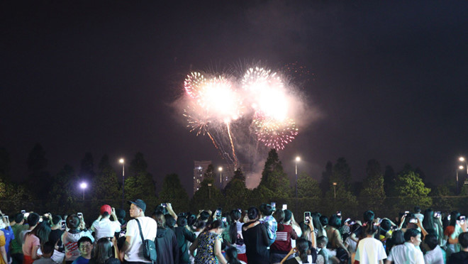Người dân vui mừng thưởng thức màn pháo hoa sau lễ công bố